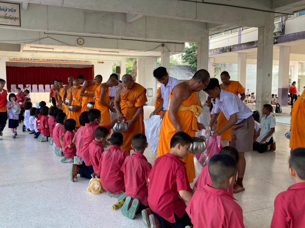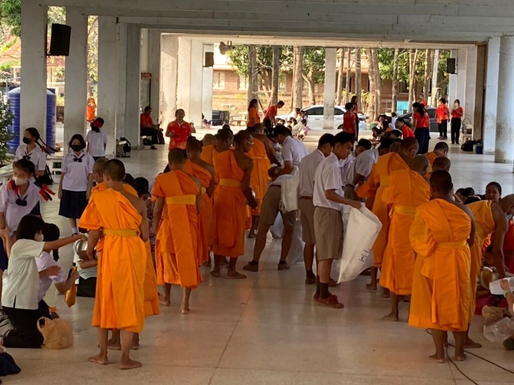 ผู้บริหาร คณะครู นักเรียน และผู้ปกครอง ร่วมตักบาตรข้าวสารอาหารแห้ง แด่คณะสงฆ์ วัดเกตแก้ว อำเภอแก่งคอย จังหวัดสระบุรี จำนวน 15 รูป ในโครงการบรรพชาอุปสมบทหมู่มาฆบูชาถวายเป็นพุทธบูชา ณ อาคาร 5 ขวัญเมือง โรงเรียนเทศบาล ๑ วัดศรีเมือง เทศบาลเมืองนครนายก