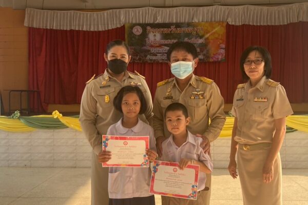มอบรางวัลให้กับนักเรียนประกวดวาดภาพระบายสีในหัวข้อเรื่องวันมาฆบูชา