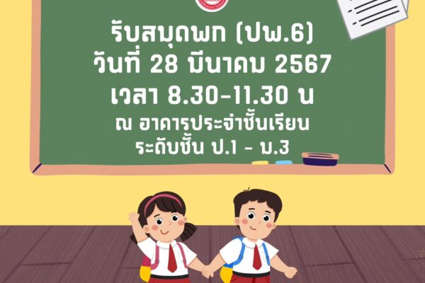 รับสมุดพก (ปพ.6) วันที่ 28 มีนาคม 2567เวลา 8.30-11.30 น…