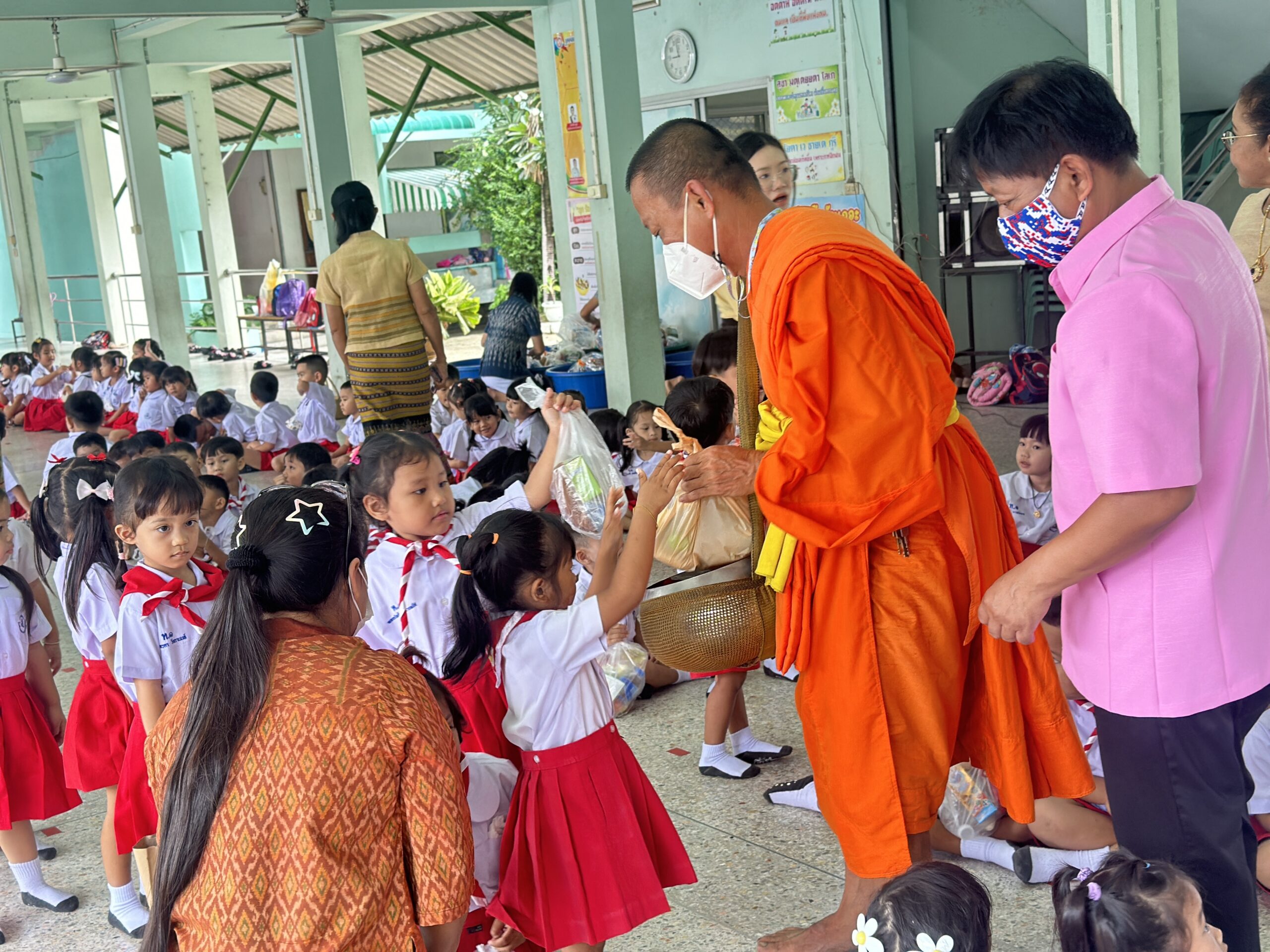 วันพฤหัสบดีที่ 18 กรกฎาคม 2567 โรงเรียนเทศบาล ๑ วัดศรีเมือง (ฝั่งอนุบาล) ได้จัดกิจกรรมตักบาตรเข้าสารอาหารแห้ง นำโดยนายอำนาจ นาคแก้ว ผู้อำนวยการสถานศึกษา นางสาวอังศวีร์ สกุลพลไพศาล รองผู้อำนวยการสถานศึกษา นางณัฎฐริดา บุ้งทอง รองผู้อำนวยการสถานศึกษา นายชิติสรรค์ ทองสอาด ครูรักษาการรองผู้อำนวยการสถานศึกษา หัวหน้าฝ่าย ครู บุคลากรทางการศึกษาและนักเรียน ร่วมกันใส่บาตร