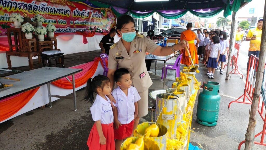 วันที่ 15-16 กรกฎาคม 2567 นักเรียนชั้นอนุบาล 1-3 เข้าร่วมโครงการอนุรักษ์วันสำคัญทางศาสนา (กิจกรรมวันอาสาฬหบูชาและวันเข้าพรรษา) นำโดยนายอำนาจ นาคแก้ว ผู้อำนวยการสถานศึกษาและคณะครู นำนักเรียนเดินทางไปหล่อเทียนพรรษาร่วมกับเทศบาลเมืองนครนายก