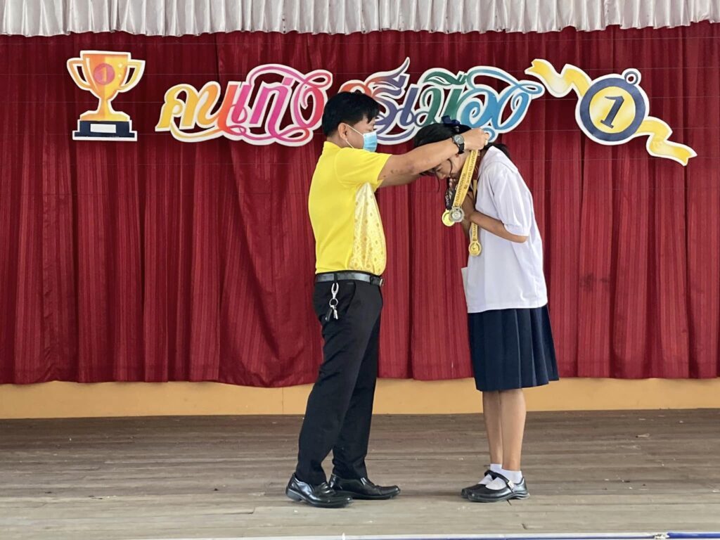 4 พฤศจิกายน 2567 ขอแสดงความยินดีกับเด็กหญิงกวินธิดา ธาตุมนตรี ชั้น ม.2และครูมานพ ปานสาคร ครูผู้ควบคุมและฝึกซ้อมที่ได้รับรางวัลในการแข่งขันกรีฑา กีฬา นร.คัดภาคตะวันออก 20-23 ตค.67 วังน้ำเย็นเกมส์ จ.สระแก้วรุ่น 16 ปีหญิง เด็กหญิงกวินธิดา ธาตุมนตรีนร. ม.๒