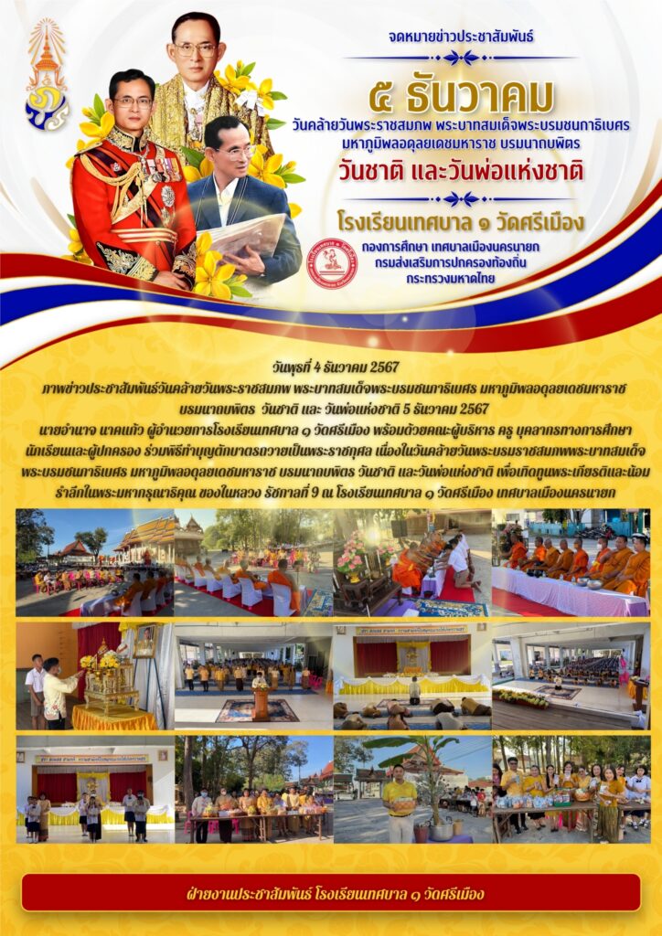 ภาพข่าวประชาสัมพันธ์วันคล้ายวันพระราชสมภพ พระบาทสมเด็จพระบรมชนกาธิเบศร มหาภูมิพลอดุลยเดชมหาราช บรมนาถบพิตร วันชาติ และ วันพ่อแห่งชาติ 5 ธันวาคม 2567