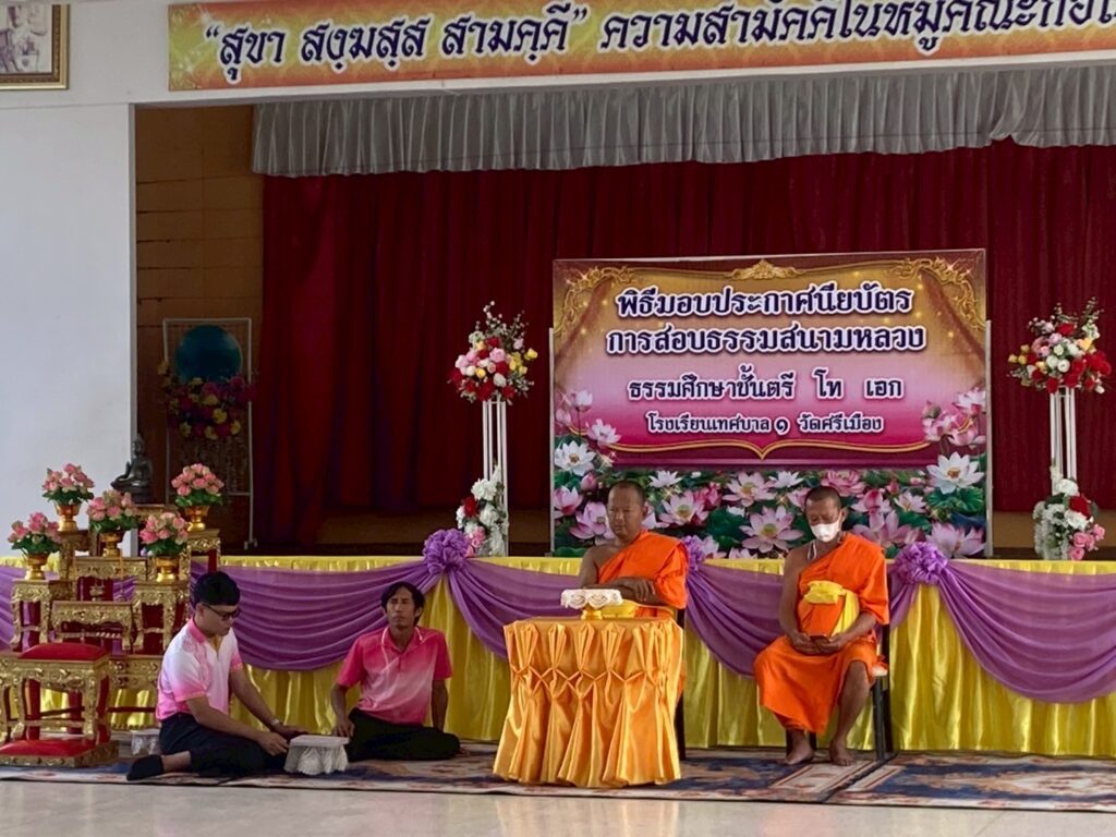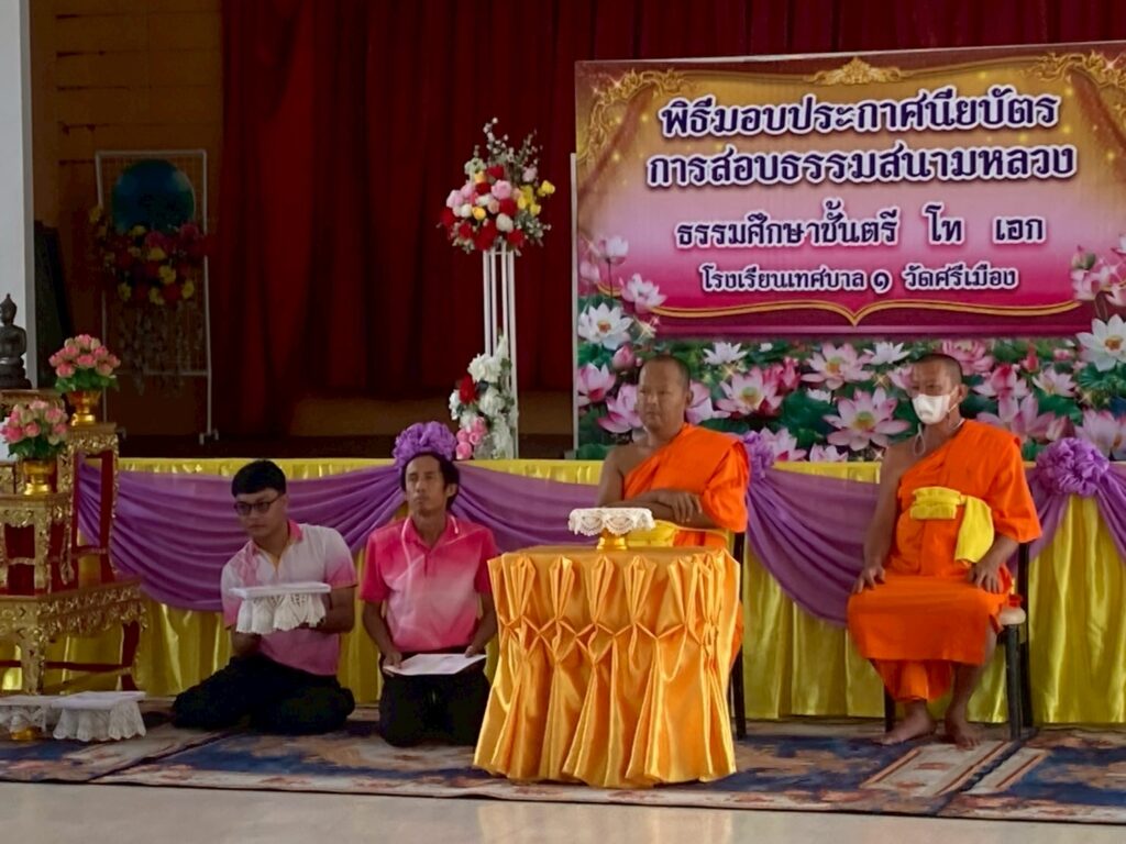 เมื่อวานนี้ วัดศรีเมือง ได้ร่วมกับโรงเรียนเทศบาล ๑ วัดศรีเมืองจัดให้มีการมอบประกาศนียบัตรให้กับนักเรียนที่ผ่านสอบธรรมสนามกลวง ชั้นตรี โท เอก ถือเป็นความสำเร็จในการพัฒนาคุณธรรมจริยธรรมให้กับนักเรียนที่เราได้ถือปฏิบัติติดต่อกันมาอย่างต่อเนื่อง