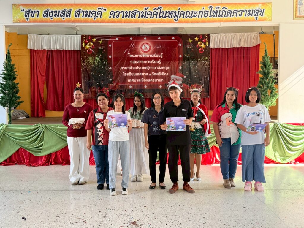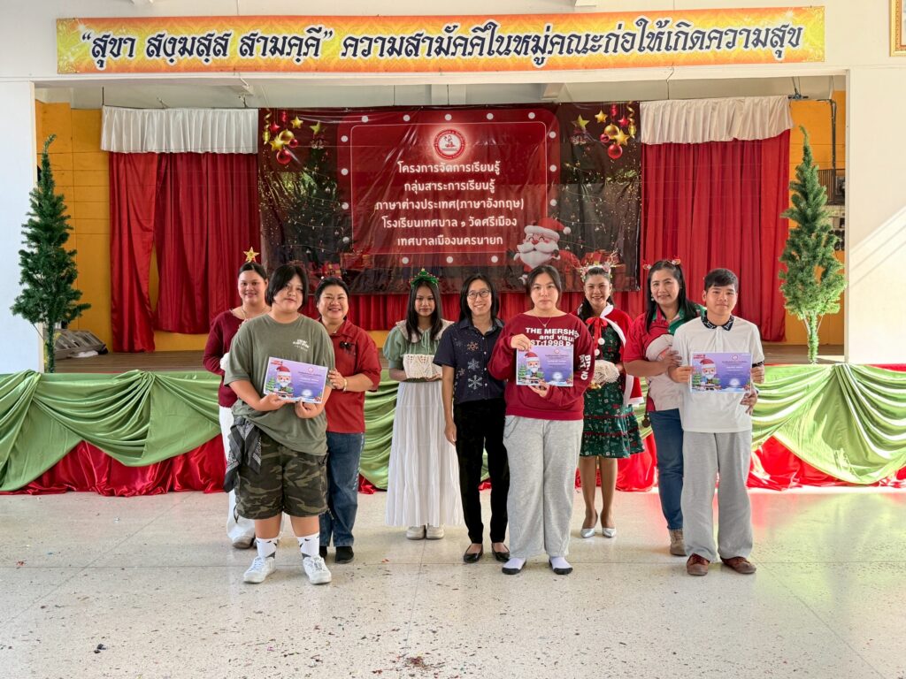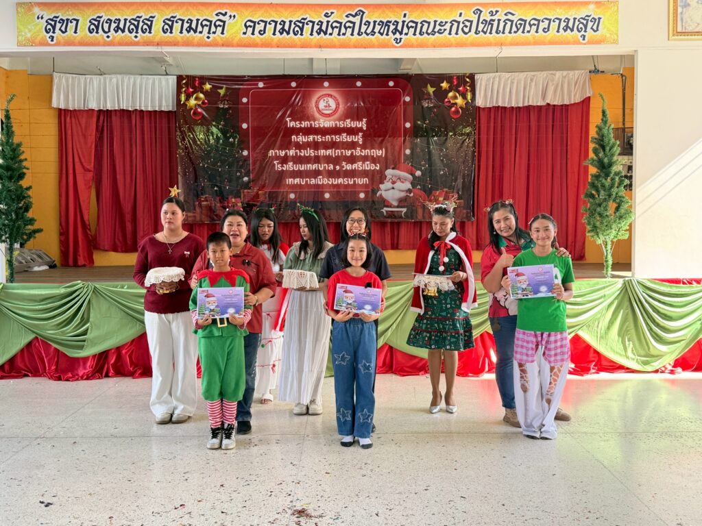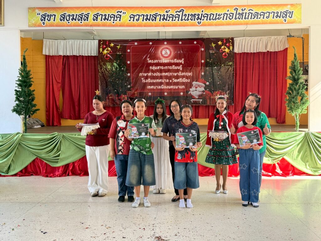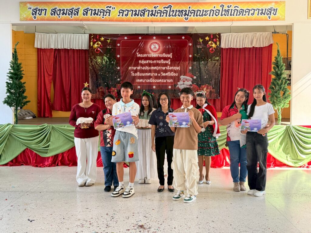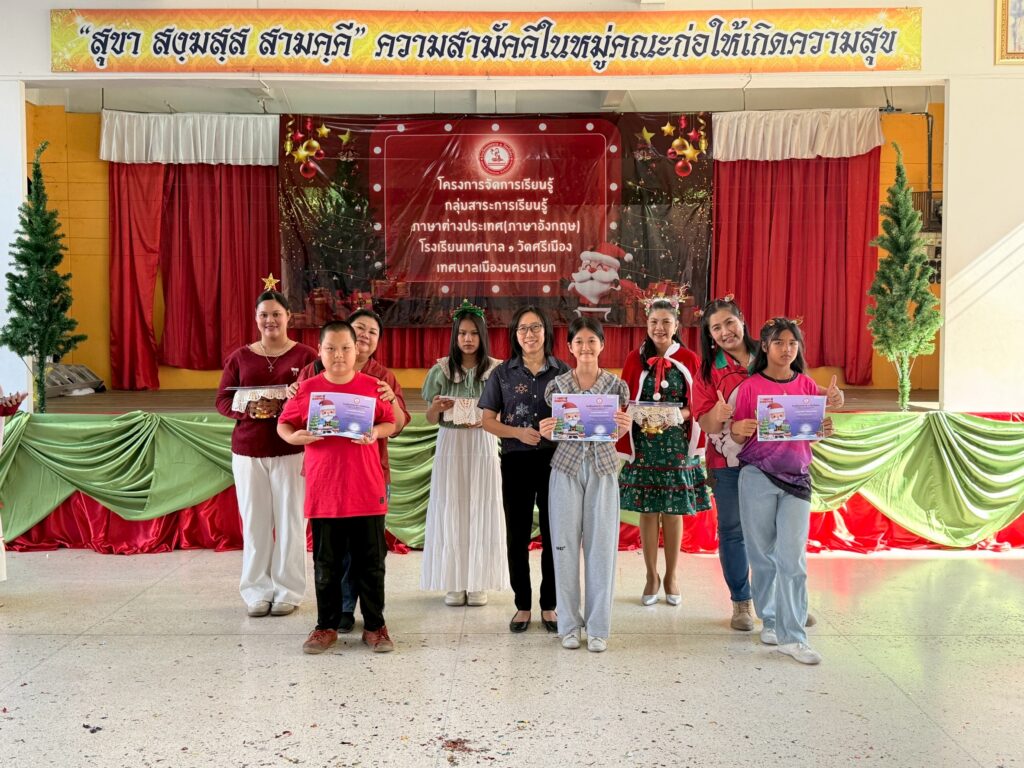25 ธันวาคม 2568 โครงการจัดการเรียนรู้กลุ่มสาระภาษาต่างประเทศ(ภาษาอังกฤษ)ครูผู้รับผิดชอบโครงการและคณะครูของกลุ่มสาระได้ร่วมจัดกิจกรรมวันคริสต์มาส เพื่อให้นักเรียนได้เรียนรู้ถึงวัฒนธรรมและขนบธรรมเนียมของชาวต่างชาติ วัฒนธรรมทางด้านภาษาและประเพณี ซึ่งมีกิจกรรมต่างๆ เช่นประกวดคัดลายมือ ประดิษฐ์การ์ดอวยพร แข่งเปิดพจนานุกรมภาษาอังกฤษ พร้อมทั้งมอบประกาศณียบัตร ของผลรางวัลให้กับนักเรียนและมีการแสดงเล่าประวัติความเป็นมาของวันคริสต์มาสมาสแล้วก็มีกิจกรรมตลาดนัดขายอาหาร ขนม เครื่องดื่ม ซึ่งนักเรียนได้แลกเปลี่ยนเรียนรู้ กันอย่างสนุกสนาน มีความสุข ทั้งนักเรียนและครูเข้าร่วมกิจกรรมทุกสายชั้นเรียน![]()