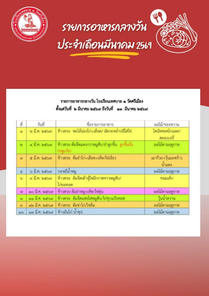 รายการอาหารกลางวัน โรงเรียนเทศบาล ๑ วัดศรีเมืองตั้งแต่วันที่ ๑ ธันวาคม ๒๕๖๘ ถึงวันที่ ๓๐ ธันวาคม ๒๕๖๘ นิศาลักษณ์ หนองสูง4 เดือน ago4 เดือน ago 0