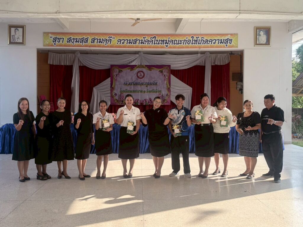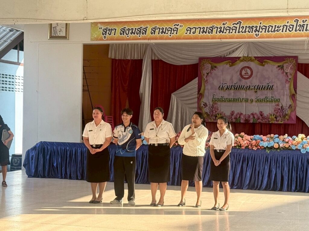 คณะครู บุคลากรทางการศึกษา และนักเรียนโรงเรียนเทศบาล ๑ วัดศรีเมือง ร่วมแสดงความยินดีกับนักศึกษาทั้ง 5 ท่าน ที่ได้เข้ามาฝึกประสบการณ์วิชาชีพครู ช่วยคุณครูสอนในรายวิชาต่าง ๆ และร่วมช่วยเหลือกิจกรรมในโรงเรียนเทศบาล ๑ วัดศรีเมือง