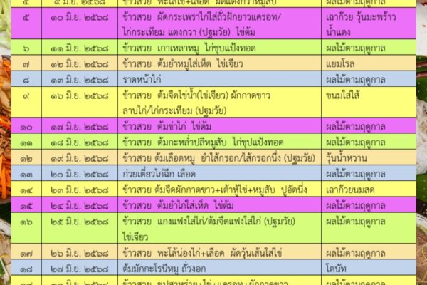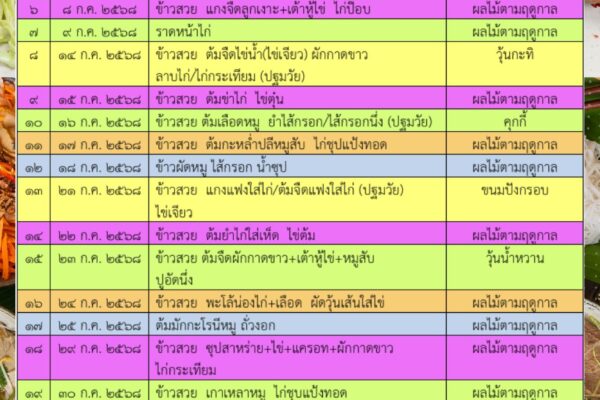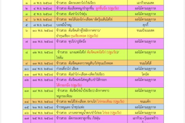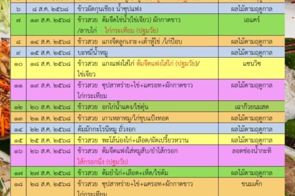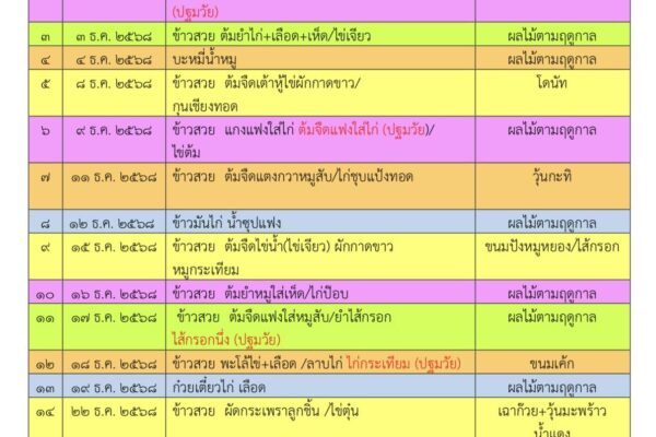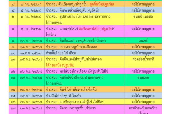ตารางอาหารกลางวันประจำเดือนกันยายน – ๑๐ ตุลาคม ๒๕๖๘