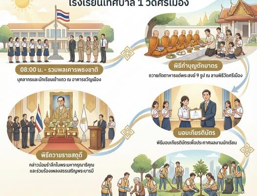 กิจกรรมทำบุญตักบาตร ข้าวสาร อาหารแห้ง ประกวดวาดภาพระบายสี ประกวดการเขียนเรียงความ เนื่องในวันคล้ายวันพระบรมราชสมภพ พระบาทสมเด็จพระบรมชนกาธิเบศร มหาภูมิพลอดุลยเดชมหาราช บรมนาถบพิตร และวันพ่อแห่งชาติ 5 ธันวาคม 2568